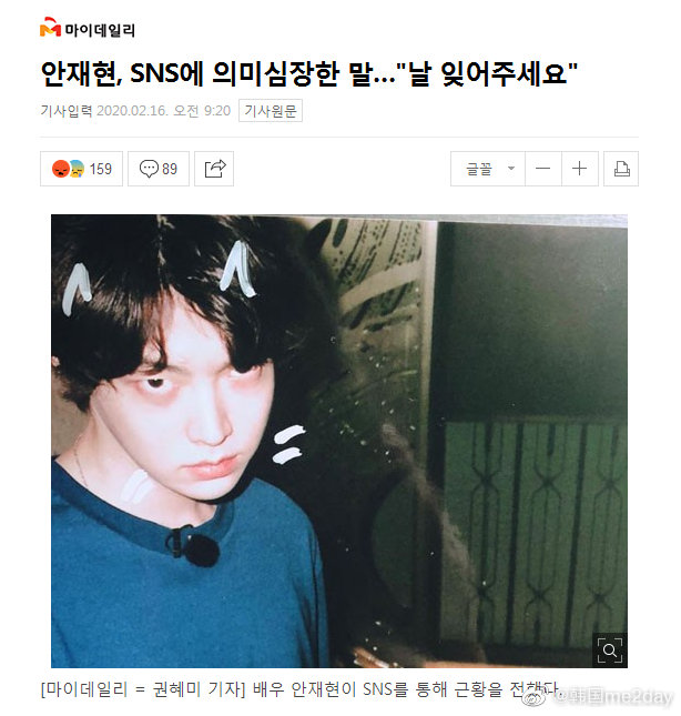 据韩国媒体报道,2月16日演员安宰贤更新个人社交网站,写到“请忘记我”,并配有一张自己的旧照,表情十分严肃。