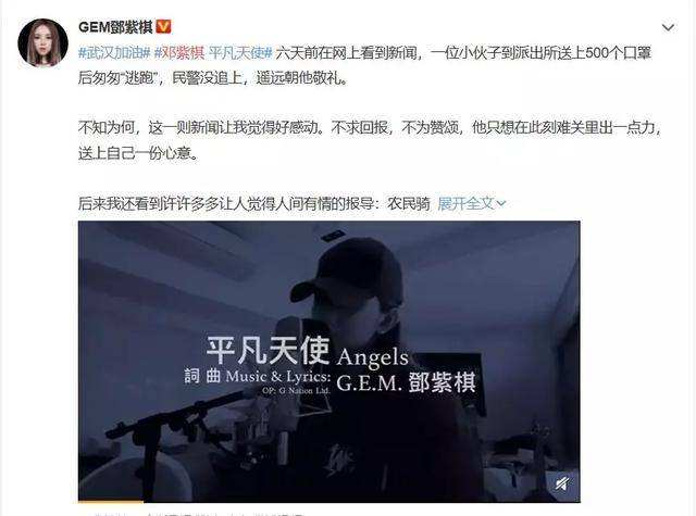 邓紫棋推出新歌《平凡天使》,向“英雄”致敬,瞬间几十万次转发