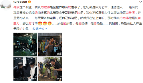 显然这部作品是超哥付出比较大心血和期待的一部作品,所以娘娘自然也会积极的为对方做宣传才对。看娘娘这一连串的夸赞之词,不难看出她对丈夫的认可和爱意,而且还透露出了一些对方学习如何进步的细节。不得不说超哥虽然搞怪,但确实是个十分用心的演员,现在还要加上导演几个字。