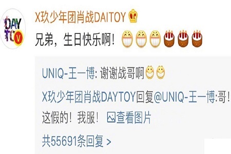 而作为好兄弟的肖战也在其评论下祝福,王一博也回应了“谢谢战哥”。可没想到,这祝福却被肖战本人给打假了,原来竟是有人用了肖战的头像,还模仿了肖战的微博名,仅一个字母之差,还叫人一时难辨出来。