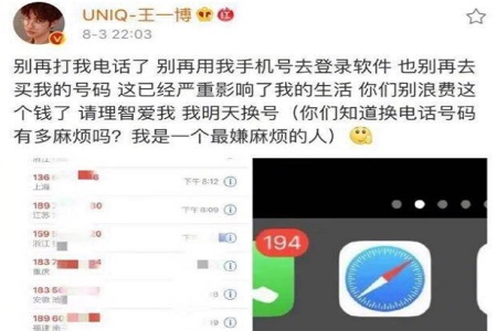 就有很多私生饭一直打电话给王一博,好脾气的王一博或许也是怕错过亲友的祝福,也都一一接了起来,在知晓是自己手机号曝光后,还非常温柔地跟对方说,别再这样了,好吗?可是,私生饭们明显没有意识到自己的错误所在,有的甚至还在网上沾沾自喜,说王一博有多温柔,还公开要用什么途径才能买得到王一博的手机号。