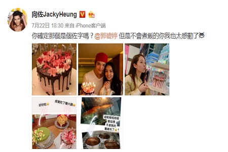 而此时向佐也在微博上晒出了郭碧婷给他做的蛋糕,不过言语中似乎有些不大满意,是怎么回事?