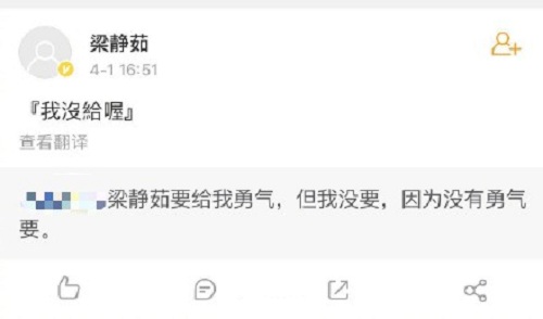 原来昨天是愚人节,我们也知道这个节日适合很多平日不敢表白的人,因为这样他们就能将原本的真心当成假意说出来,即使被拒绝也不会感觉到尴尬,所以这个日子的表白数量直线上升。当然了即使想要当成笑话一样说出口也是需要胆子的,昨日有位网友就自我调侃表示“梁静茹要给我勇气,但我没要,因为没勇气要”,调侃自己还是不够大胆的意思。没想到这条微博却意外的得到梁静茹本尊的回应,表示自己没给哟。让不少网友表示这么多年这个梗终于被本人回复了,没想到还是在线打假,让不少人感到十分有趣。